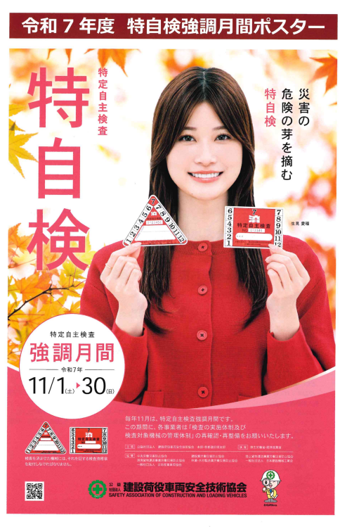 11月は「建設荷役車両特定自主検査強調月間」です。