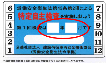 フォークリフトの特定自主検査(年次点検)を毎年受けているか標章で確認できます。